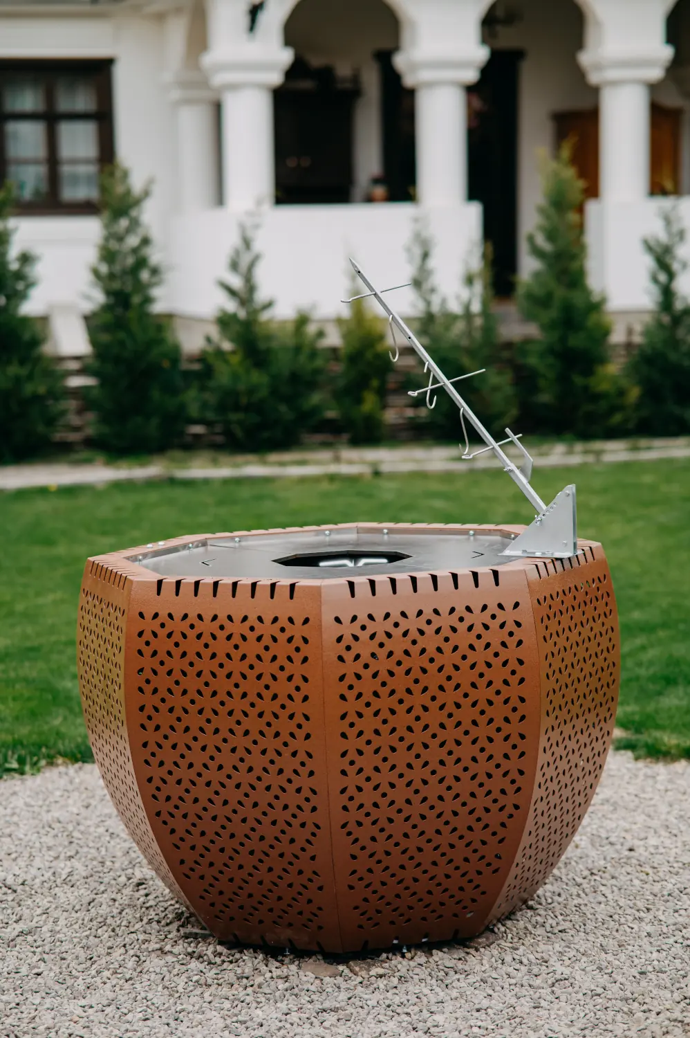 CRATERFLAME® Meteorite Grill on the courtyard of a house