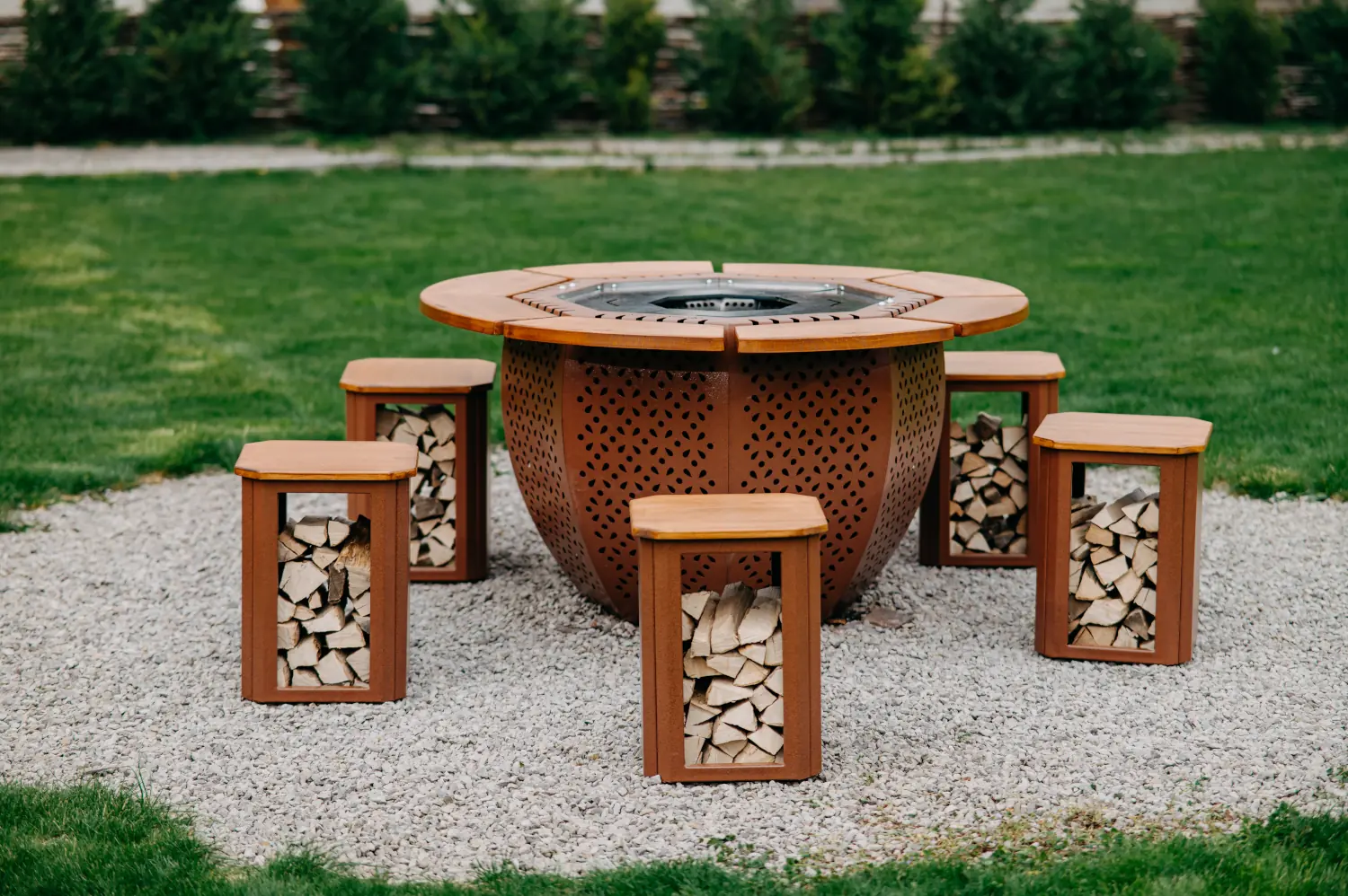 The CRATERFLAME® Grill can be fueled with wood, charcoal, or pellets, allowing users to choose the option that suits them best. With its elegant, stylish design, it's the perfect choice for family gatherings or upscale hospitality environments.
